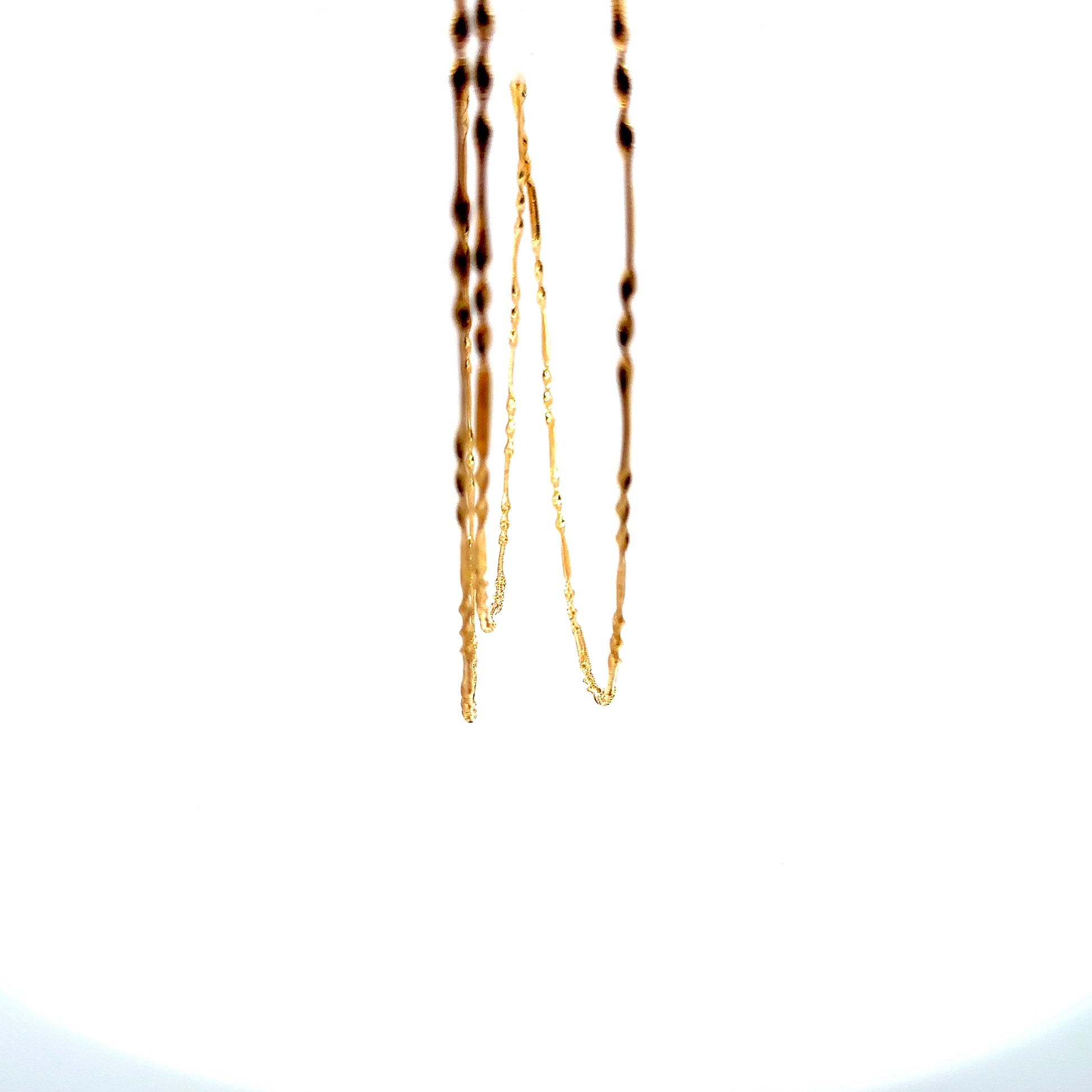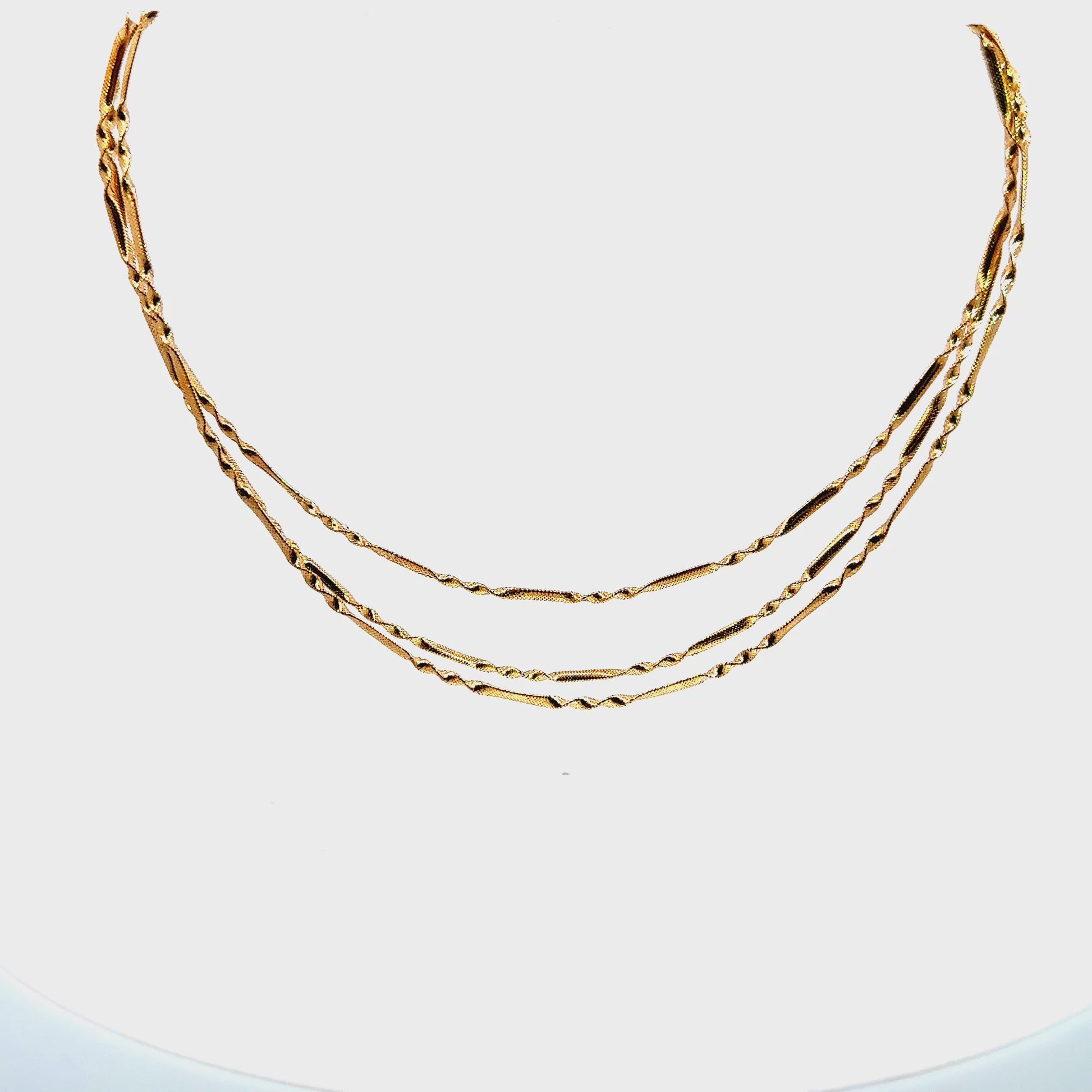 Lightweight yet full of character, this 18K gold necklace weighs just 4.38 grams and features three slender twisted strands for a layered look. The gentle shimmer and airy design make it a perfect everyday luxury piece.