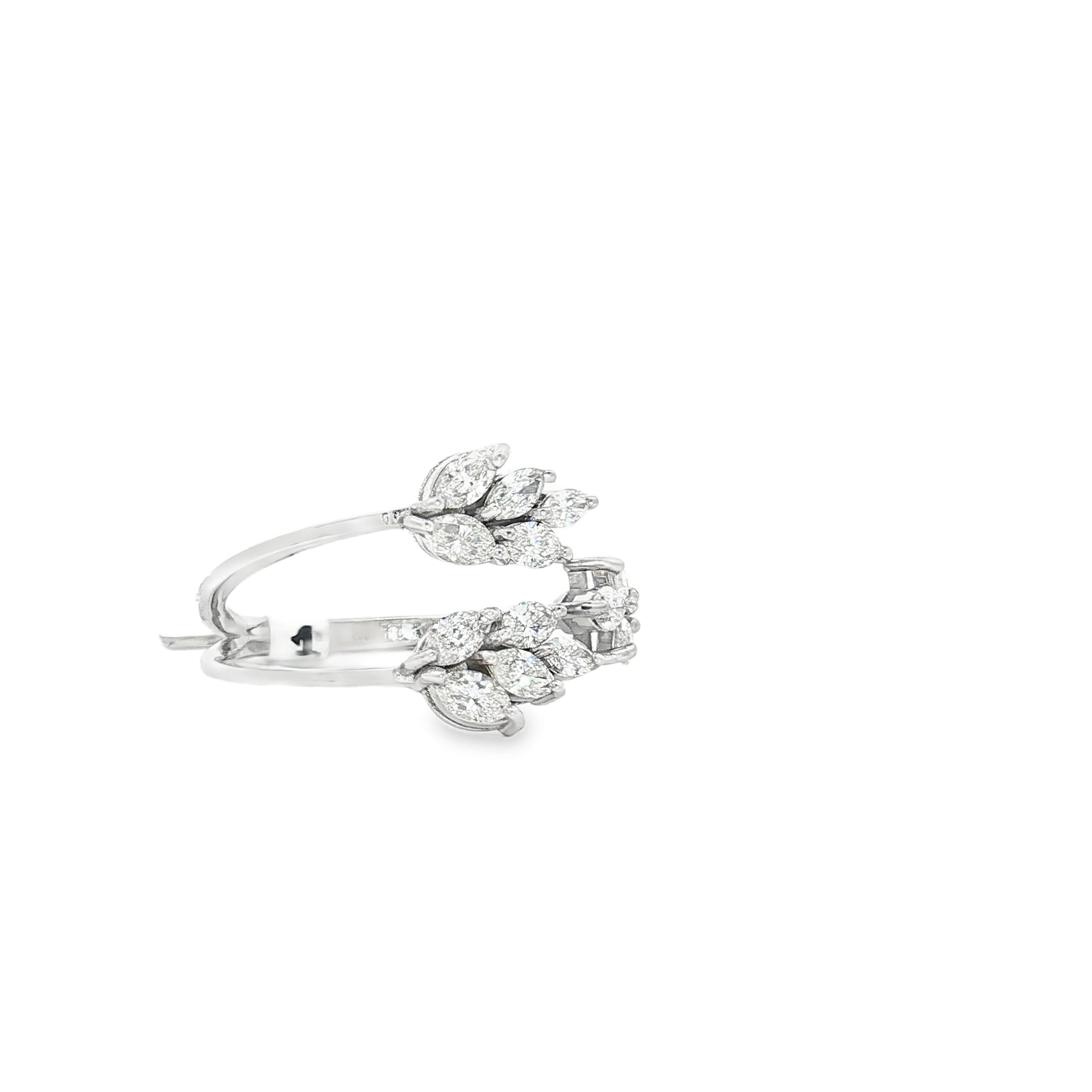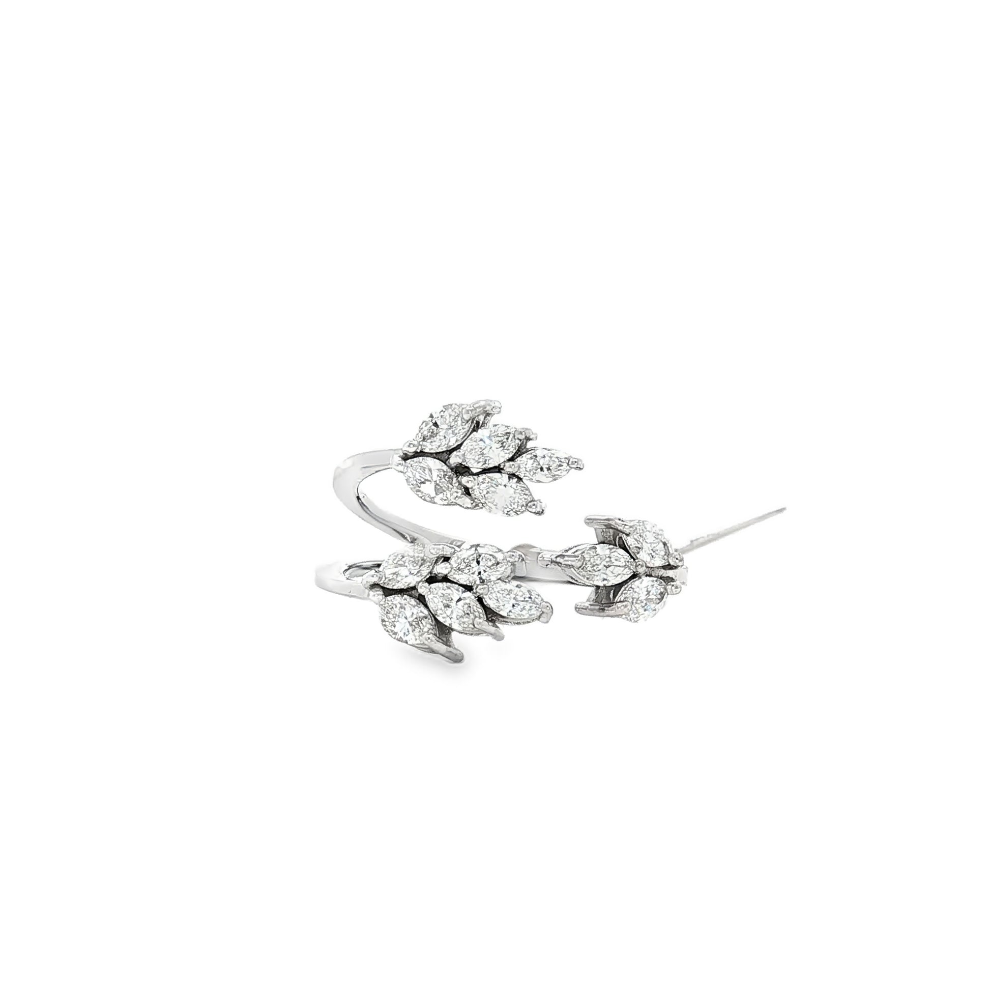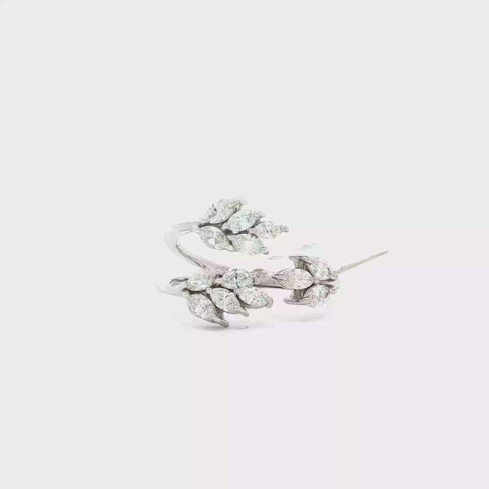 A refined design crafted in 18K white gold, weighing 3.24 grams. This elegant earring is set with 0.87 carats of marquise-cut diamonds, arranged in a graceful cluster that radiates brilliance. A modern yet timeless piece, perfect for adding sophistication to any look.