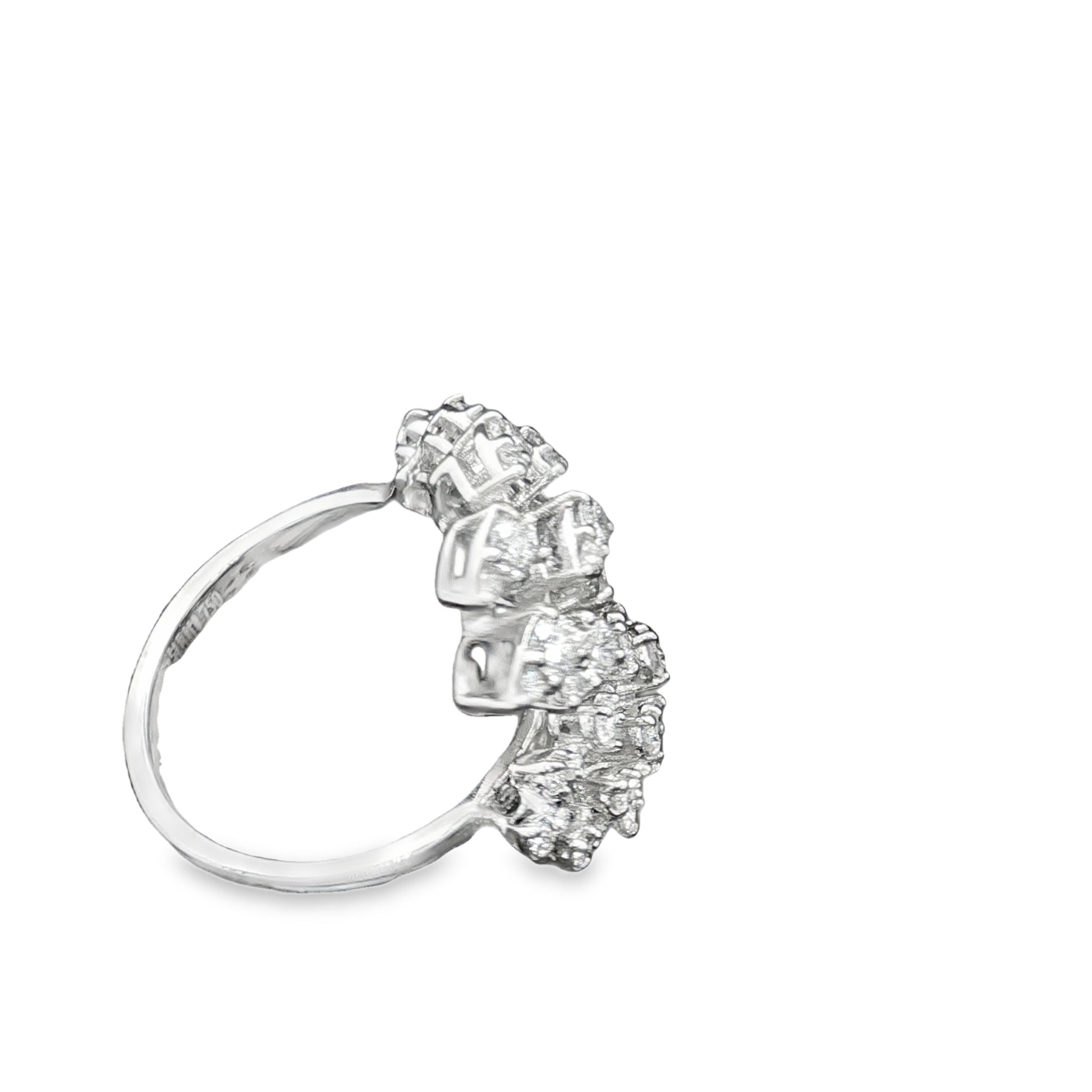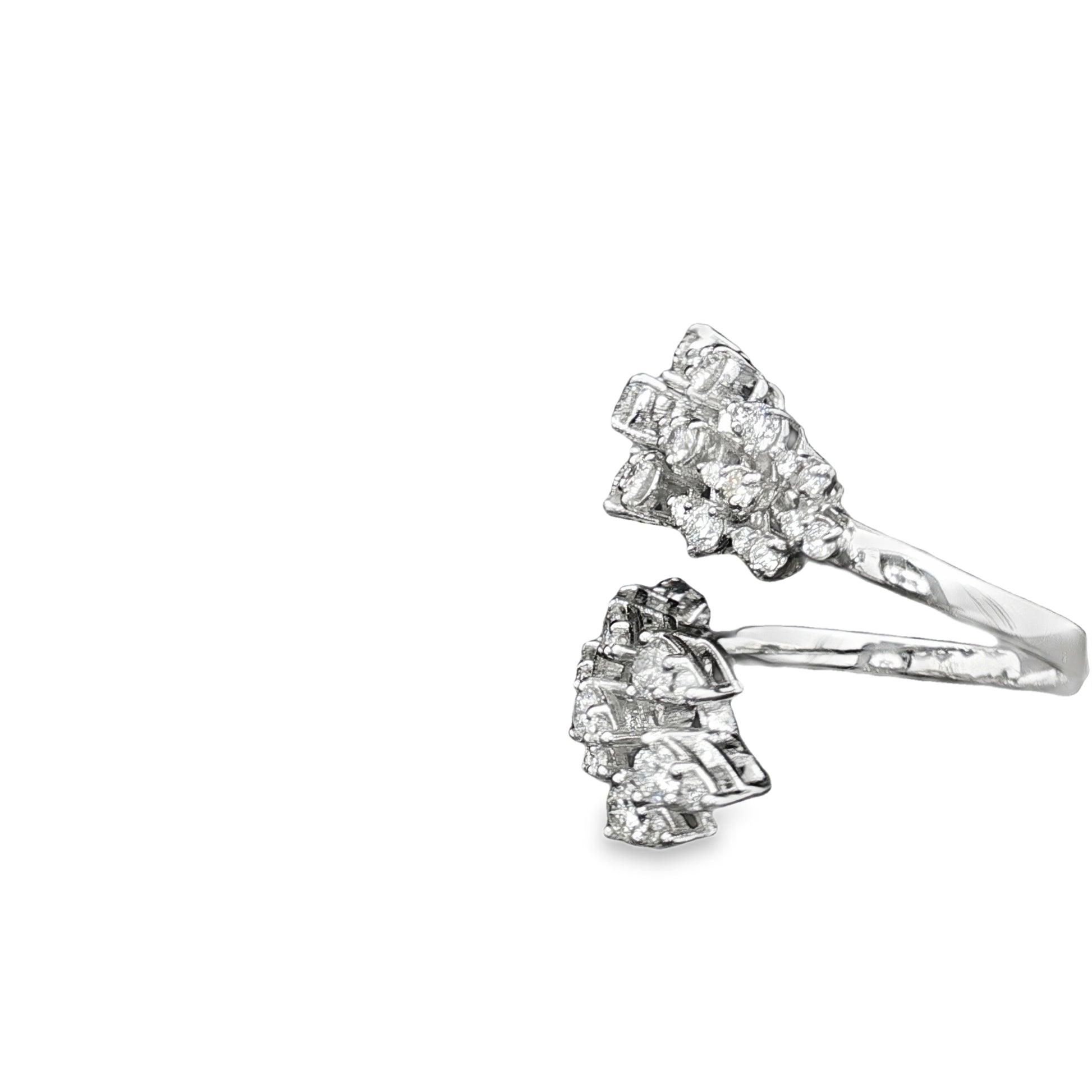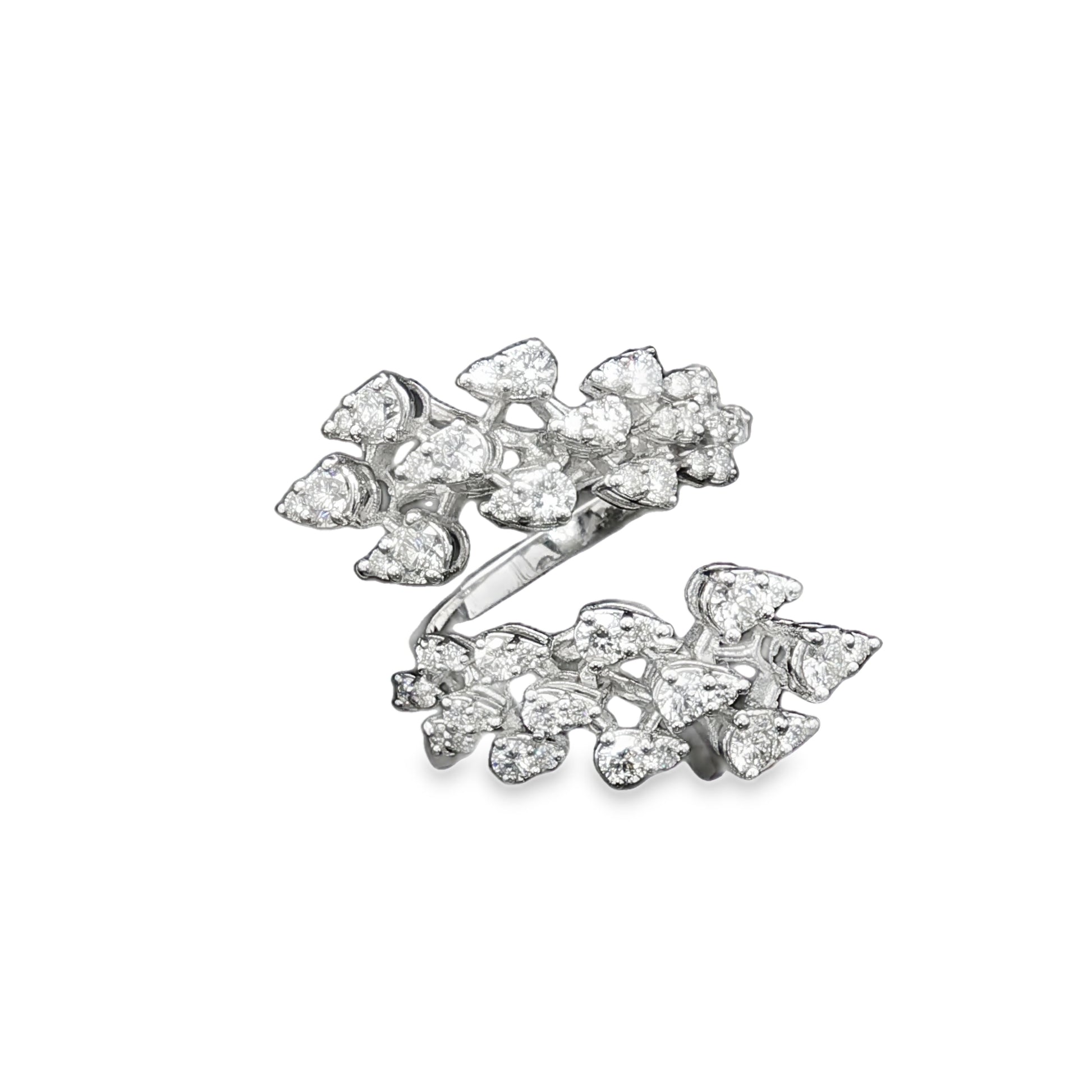 An artistic open-style ring in 18K white gold, weighing 8.28 grams. The design is set with a total of 1.03 carats of round brilliant diamonds (0.34ct + 0.245ct + 0.445ct), creating a leafy, nature-inspired sparkle. A bold yet elegant statement piece that blends modern artistry with timeless luxury.