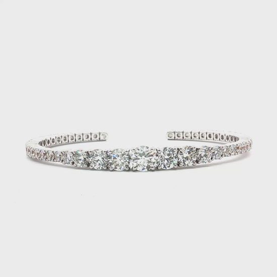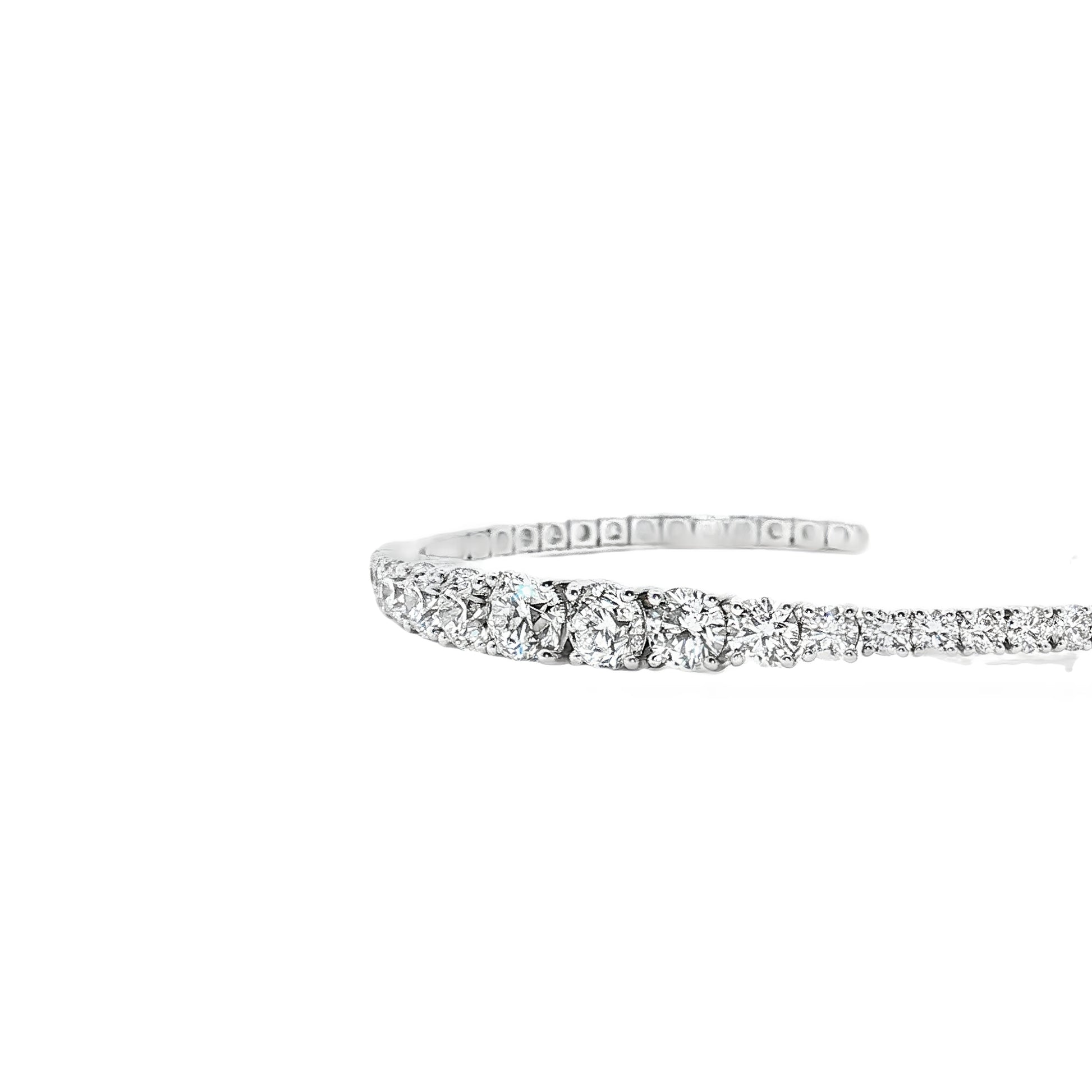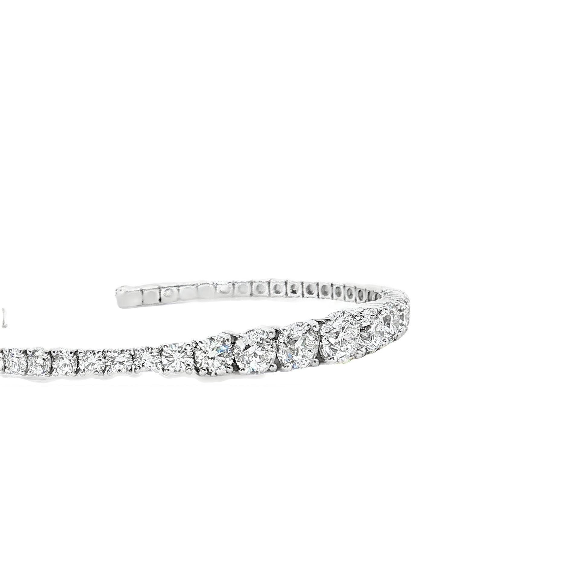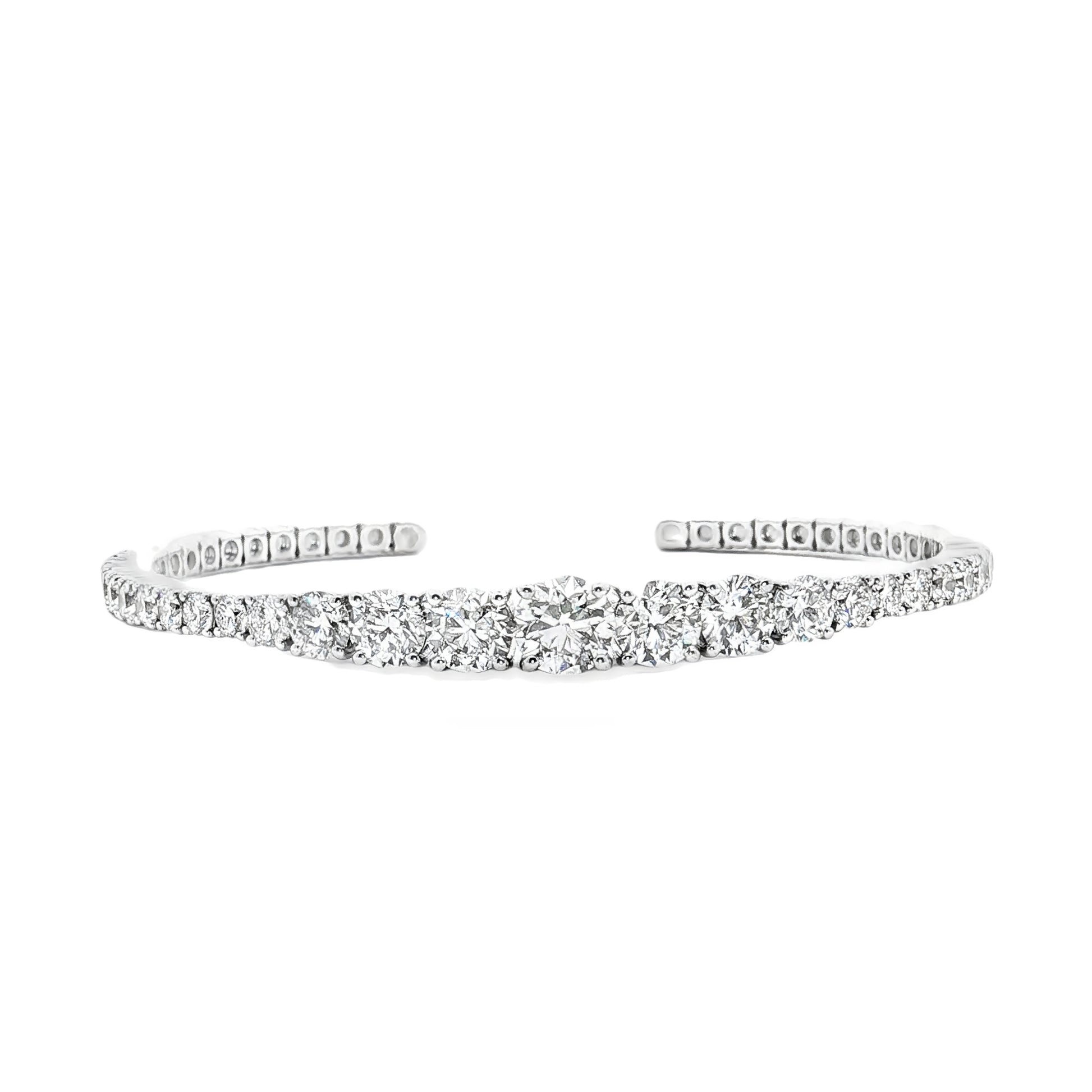 This exceptional bracelet is crafted in 18k white gold, adorned with a magnificent arrangement of round brilliant diamonds totaling 8.55 carats. Each diamond is meticulously set to create a seamless flow of brilliance, radiating timeless elegance and refined luxury. A true statement of sophistication, perfect for life’s most glamorous moments.