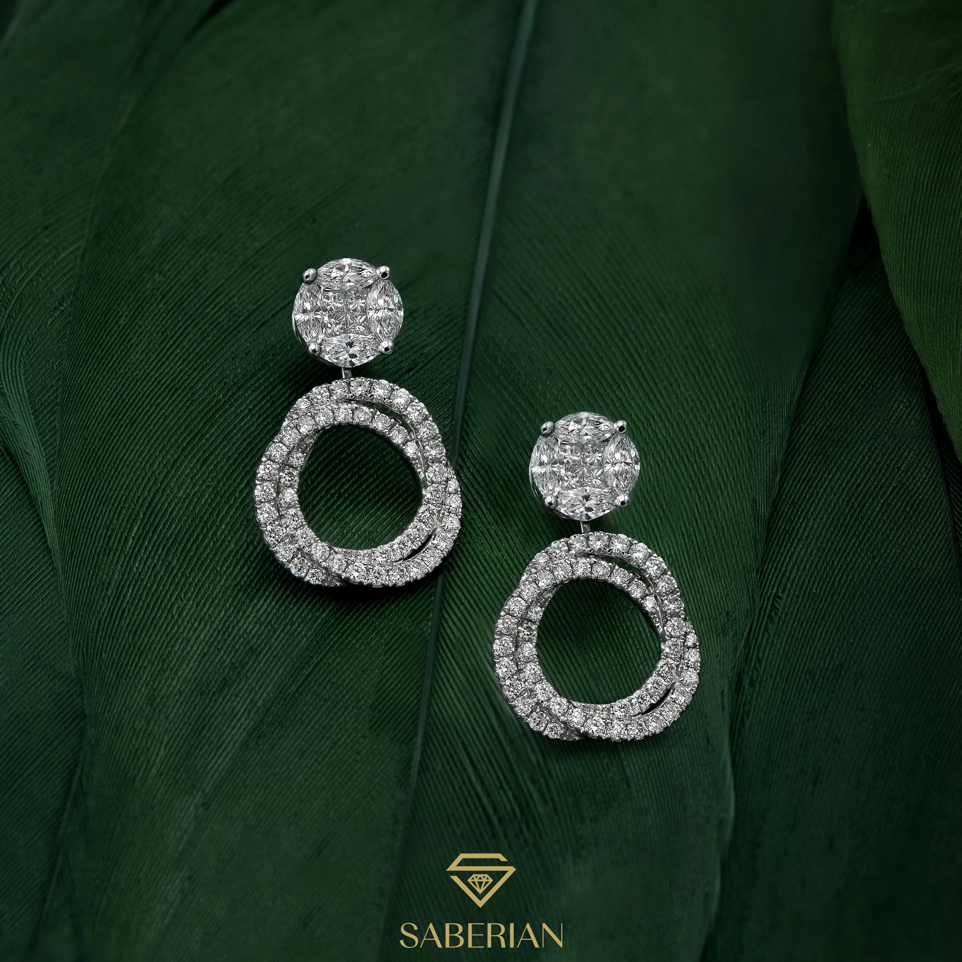 These exceptional earrings feature a striking combination of diamond cuts — round, marquise, and princess — totaling 1.744 carats. Set in luxurious 18k gold, the intricate design and brilliant sparkle make this piece a timeless statement of elegance and sophistication.