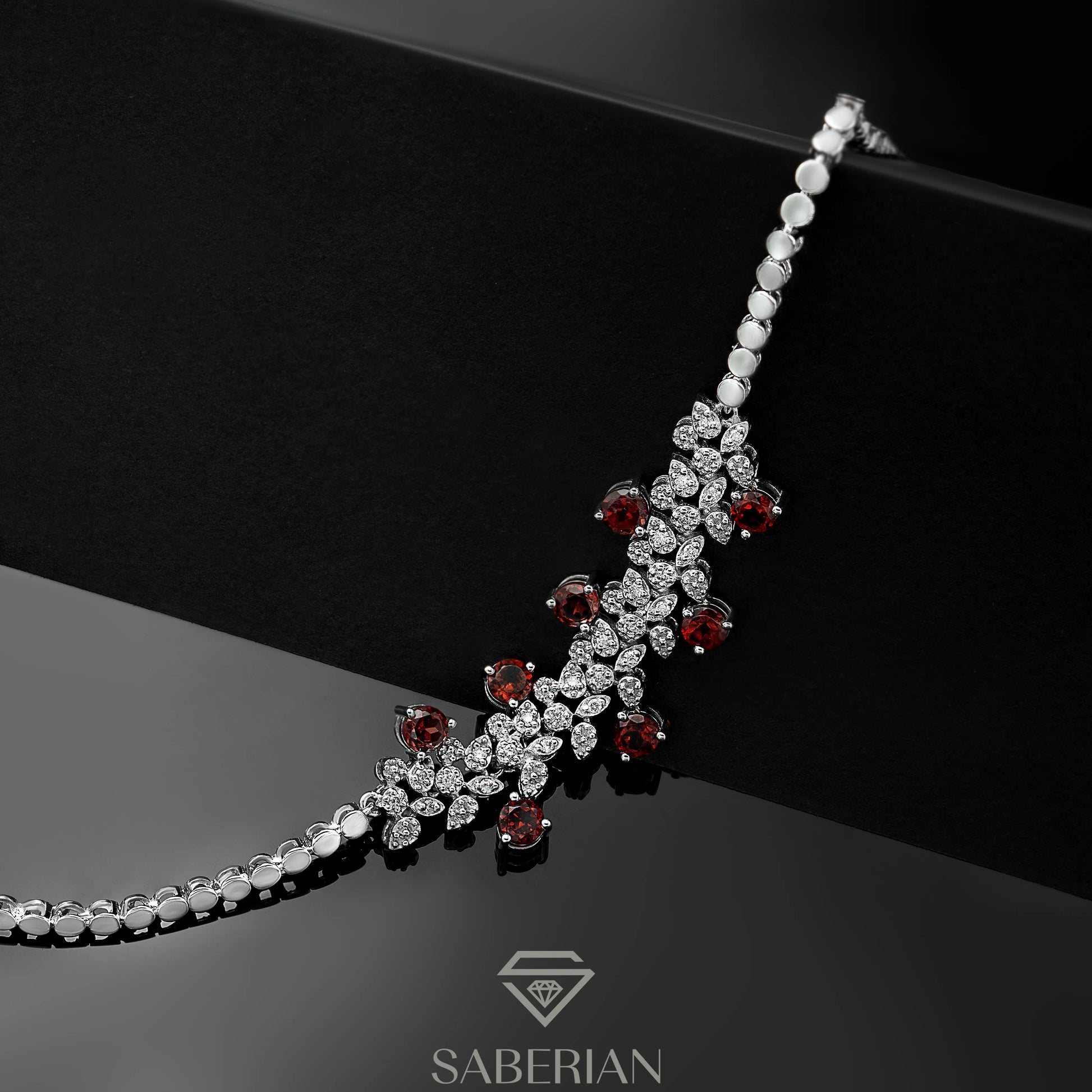 This sophisticated Bracelet combines the timeless sparkle of diamonds with the deep allure of red garnets. Set in luxurious 18k gold, its elegant design is perfect for making a bold yet refined statement at any special occasion.